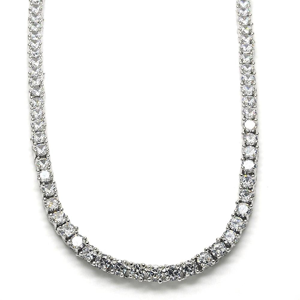Collar Rodio plateado estilo tennis 4mm piedra cubica transparente con baño de rodio.