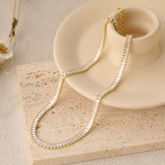 Collar plata 925 sterling silver, estilo tennis cz ajustable forma rectangular 18 kt geometrico.