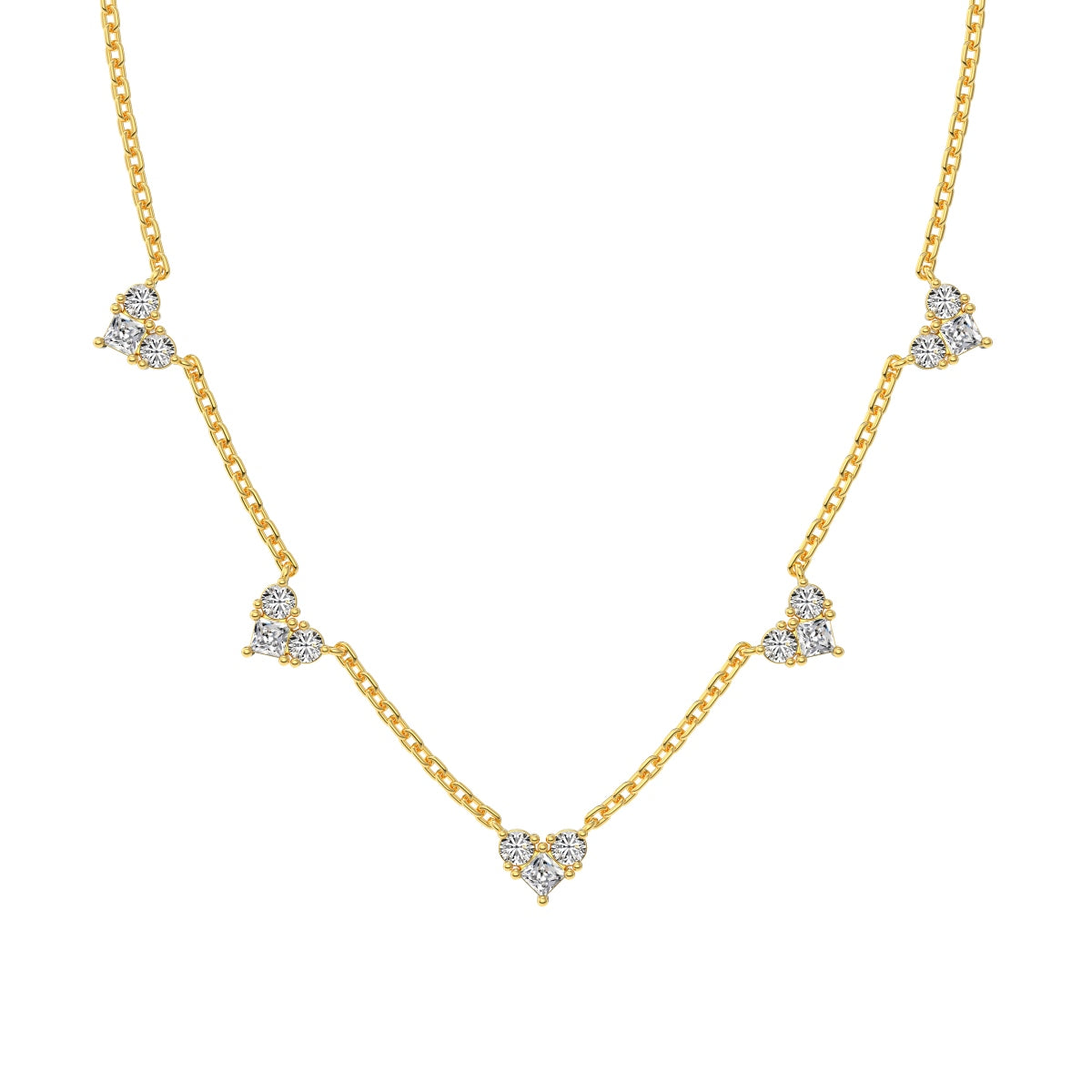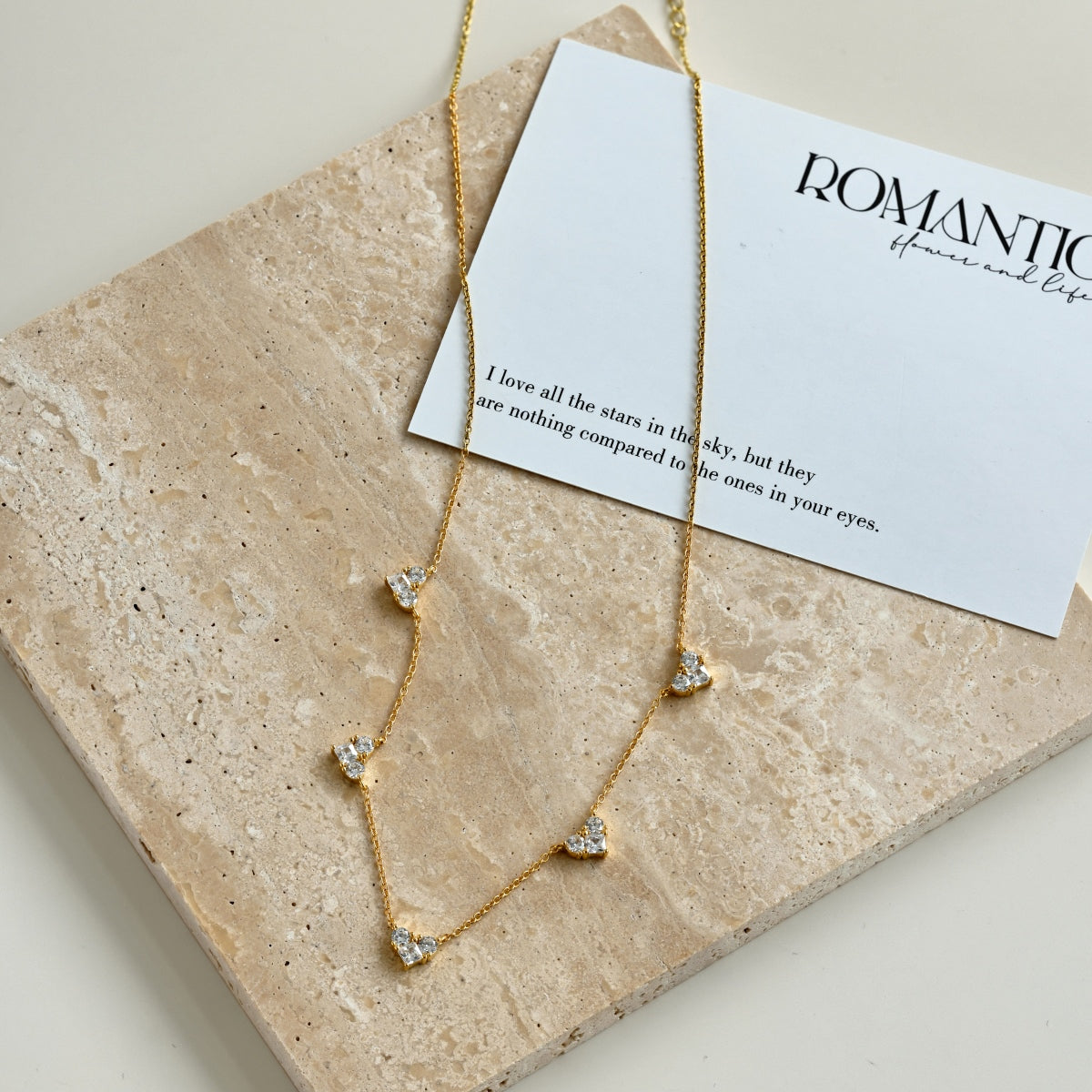 Collar Plata 925 sterling silver corazones en circonita cubica con baño de oro de 18 kt