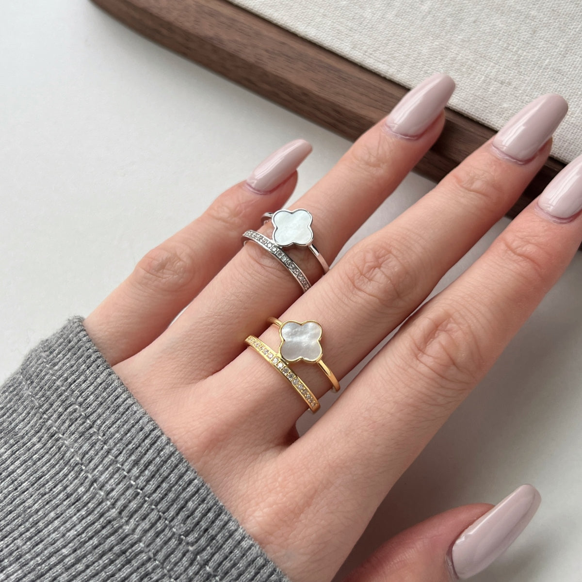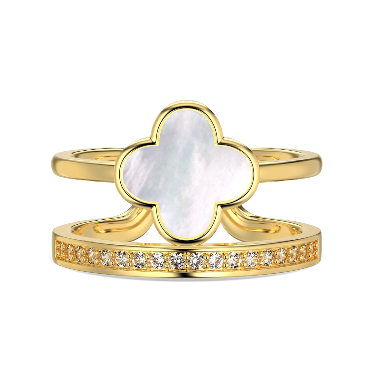 Anillo plata 925 sterling silver 925 estilo clover, con un baño de oro 18 kt.