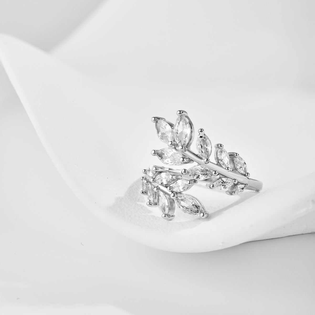 Anillo plata 925 sterling silver con baño de oro 18 kt y rodio estilo marquesa y trigo frances color plateado, ajustable.