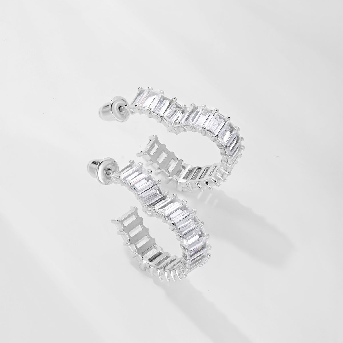 Argolla plata 925 sterling silver corazon baguette con diamantes de circonia 5 A. Ideal para lucir trendy en ocasion especial y casual.