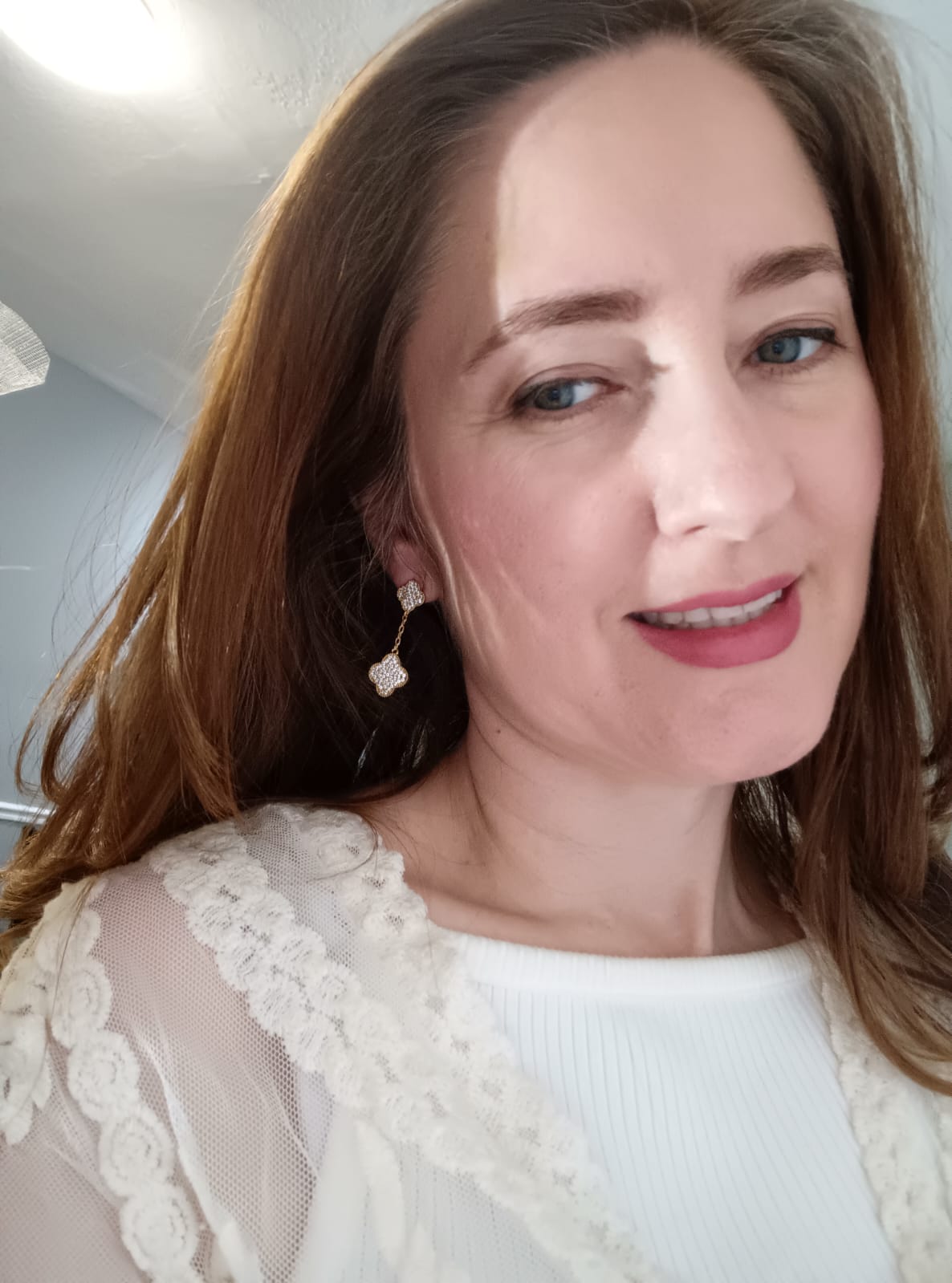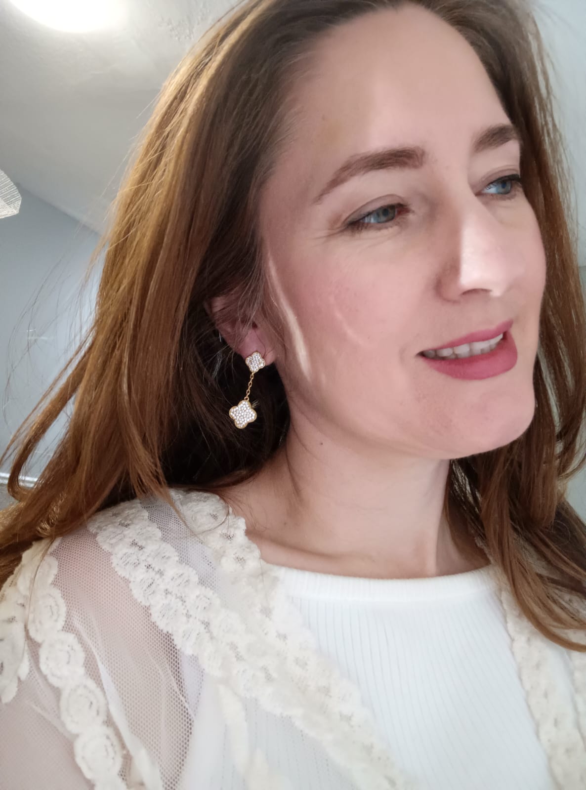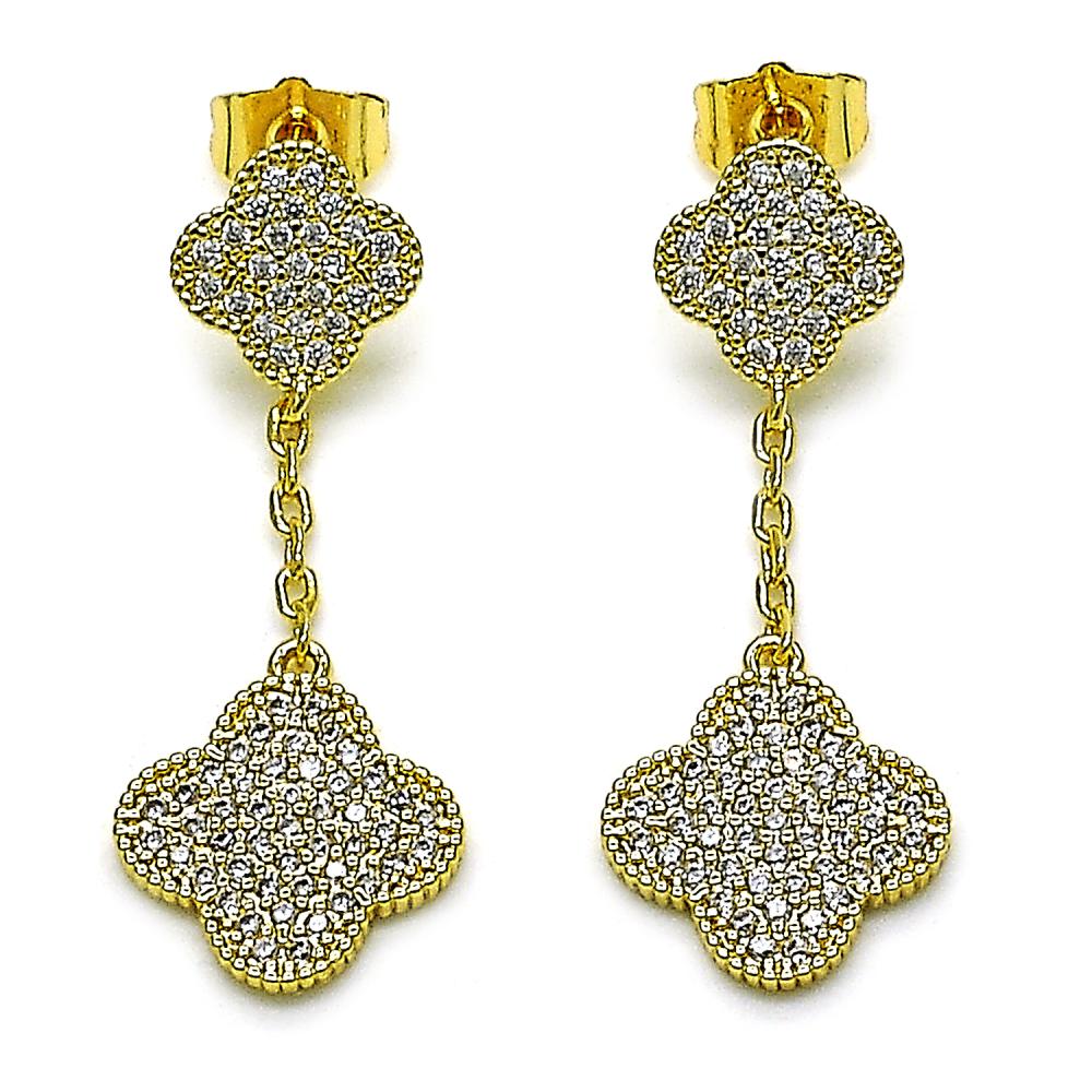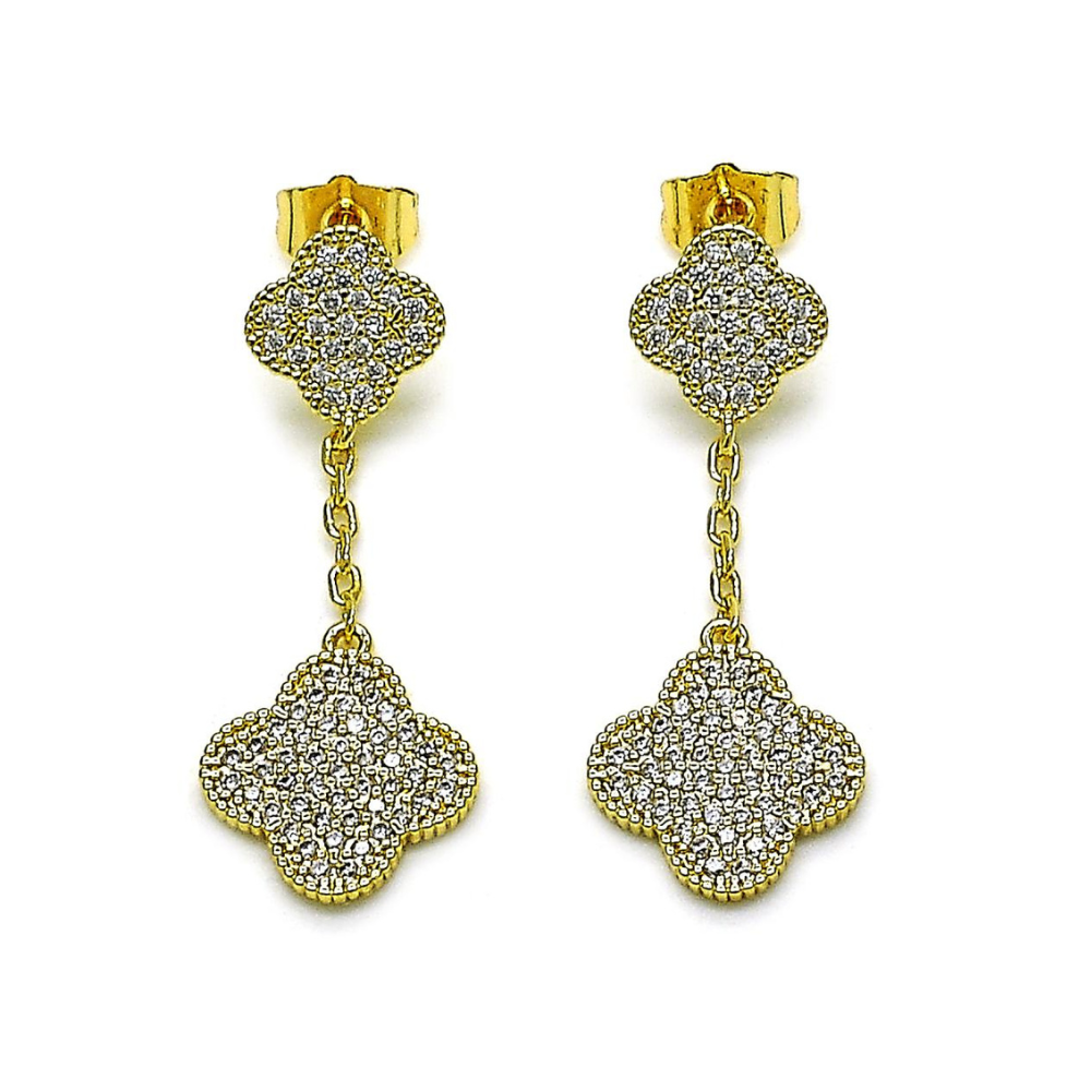 Arete Oro laminado Gold filled 18 kt clover alargado cz circonias.