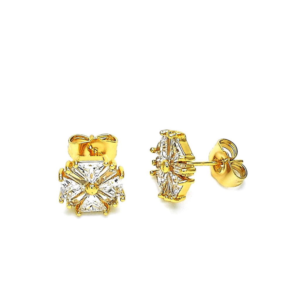 Arete Oro Laminado Gold filled 18 kt flor cz  circonias.