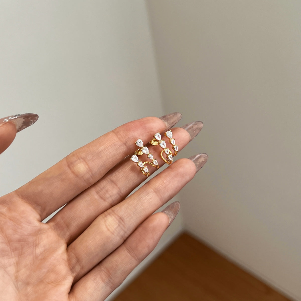 Aretes en plata 925 sterling silver con un baño de oro de 18 kt stud  geometrico con circonita cubica estilo trendy.