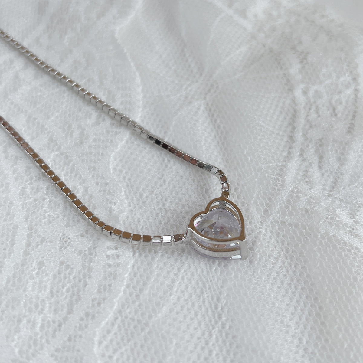 Collar plata 925 sterling silver estilo tennis corazon en el centro CZ 5A 8 oct, Estilo trendy que te hara realzar tu estilo en toda ocasion